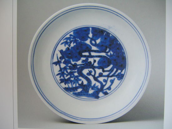 關(guān)于成化至正德階段的青花彩繪工藝,有人著文指出:“典型成化青花已改變了宣德時(shí)期由于采用一枝筆著彩而留有層次和空白地的方法,改用雙勾線條,一筆涂抹的上色法”(《青花釉里紅》“前言”,上海博物館,兩木出版社)。正德的典型器特征之一是“青花紋樣均為雙勾填色,用長筆平涂,無筆觸感,不留空白”(同上)。作者可能是因不諳青花彩繪,這段文字令人費(fèi)解又有誤。宣德時(shí)期的彩繪,以畫葉為例,先雙鉤葉片的輪廓線,再在葉兩側(cè)拓抹濃青料,然后用不含(或稍含)青料的筆略蘸清水(或淡青料水)洗染,從深到淺逐漸向中間(畫葉脈處)過渡,最后用濃青料鉤畫葉脈的線條,葉片產(chǎn)生受光的立體感。洗染時(shí)清水筆洗淡了拓抹的青料,在坯體上留有深淺交錯(cuò)的筆觸,被許多人誤認(rèn)為是層次。成化開始(包括正德),紋樣的全部線條鉤繪完以后再填色。如果是用“涂沫”、“平涂”填色,筆鋒“涂”過坯體會(huì)觸及線條(如青料畫葉脈的線條在坯體上有一定的隆起高度),就會(huì)變得模糊不清晰。這個(gè)時(shí)期的官窯傳世品均沒有這種情況,故可以斷定不是用涂抹青料填色的。筆者曾著文提出成化至正德是“洇染”填色。近些年有成化開始混水的說法。誠然,洇染與混水有些相似之處,而且,目前未見嘉靖以前運(yùn)用混水的文獻(xiàn)資料,并不能否定它的存在,只有通過對比分析出洇染與混水相似與不同的特征,才能把兩者區(qū)別開來,從而得出嘉靖以前沒有混水技法的結(jié)論。